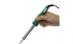 如何解決烙鐵不掛錫 1.電烙鐵在焊接?xùn)|西的時候,如果發(fā)現(xiàn)電烙鐵溫度過高電烙鐵焊頭糊了的時候,最簡單的處理方法就是將電烙鐵在吸滿水的海綿里搓幾下,就立刻展現(xiàn)出光亮如新的焊頭了。2.電烙鐵長時間的干燒,或者使用劣質(zhì)的焊錫和松香,或者久放前沒有掛錫保護焊頭,而造成了電烙鐵焊頭掛錫層的脫落,造成了焊頭不掛錫,在經(jīng)過吸水海綿處理后依然無法正常掛錫時,可以采取從新打磨焊頭的方法來解決. 3. 1:除去電源,在電烙鐵冷卻的狀態(tài)下,將焊頭拆下(注意:要輕拆,不要弄折加熱棒),在準(zhǔn)備好的1000目的砂紙上磨掉黑色的不掛錫層,當(dāng)然,如果砂紙不好買到的話,家用磨刀石的細砂面也可以打磨。 2:將磨出銅色的焊頭,在電烙鐵上安裝好,插上電源。 3:在電烙鐵頭逐步升溫的時候(注意此時切勿將焊頭沾松香和吸水海綿),用松香芯焊錫絲觸碰焊頭。從開始的不熔化,到焊頭溫度逐步升高后,焊錫絲逐步開始融化。此時,將焊錫絲觸碰焊頭的全部銅色面后,焊錫即可掛好。 4:將掛好焊錫的焊頭,在松香里沾滿,即可使用。